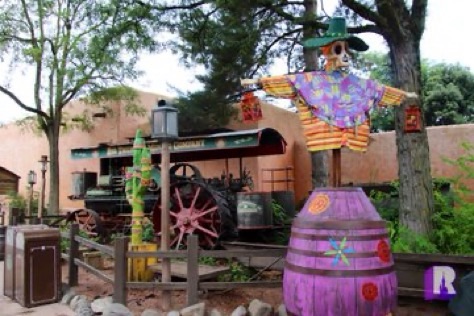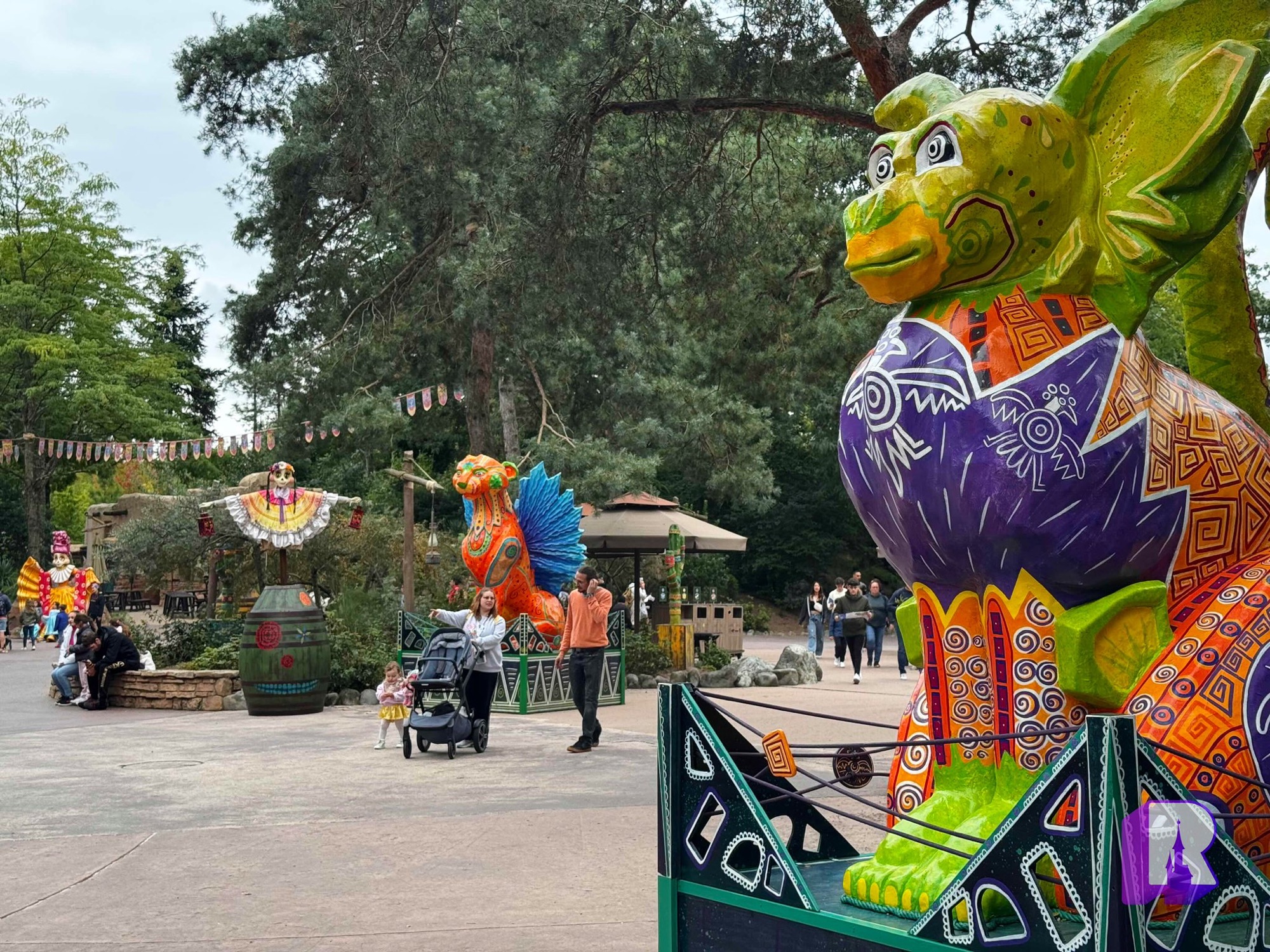 Tandis que les parcs américains sont déjà plongés dans l’ambiance d’Halloween, ici à Disneyland Paris, les festivités démarrent doucement, comme à l’accoutumée, à Frontierland. On y retrouve, une fois de plus, les jolies décorations Dia Los Muertos.