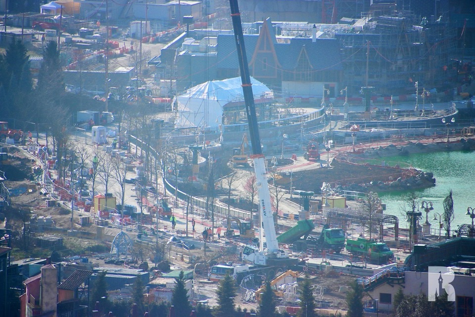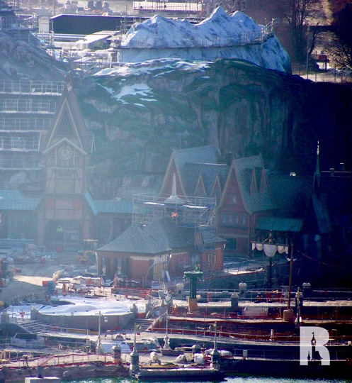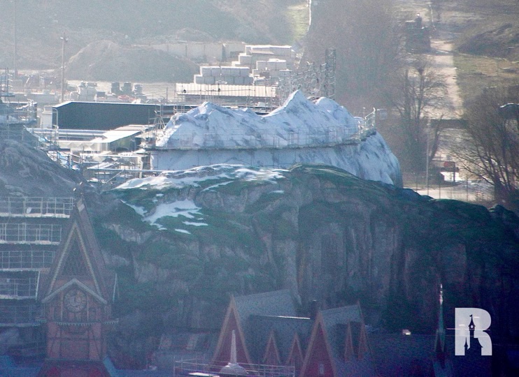 Les dernières avancées à World of Frozen concernent les finitions des façades et les sommets enneigés qui prennent forme.