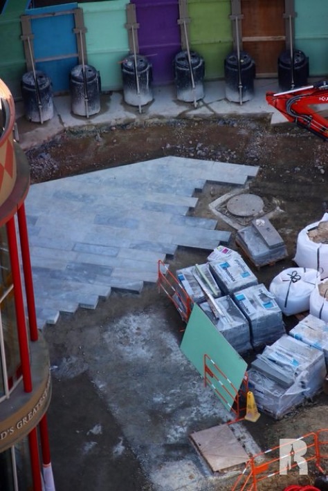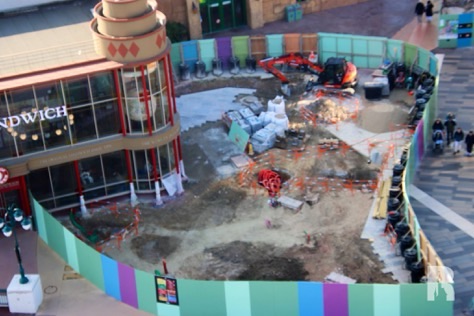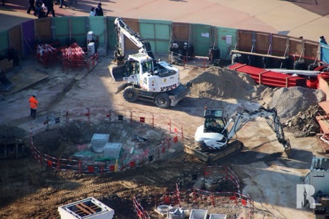 Les travaux continuent au Disney Village avec l’ouverture de nouvelles boutiques, la pose de pavés, les fondations du futur restaurant italien et de la terrasse au bord du lac.