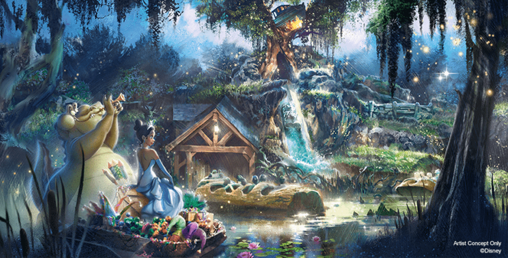 According to the press release from Disney, Imagineers have been working on the retheming since 2019 (which to some seems unlikely). The new plot will take place after the “final kiss” from the movie and guests will follow Princess Tiana and Louis the alligator’s adventure to create the perfect Mardi Gras performance. To quote the announcement, Disney Imagineers are answering the question they ask themselves each time they retheme an attraction – “How can we build upon or elevate the experience and tell a fresh, relevant, story?”