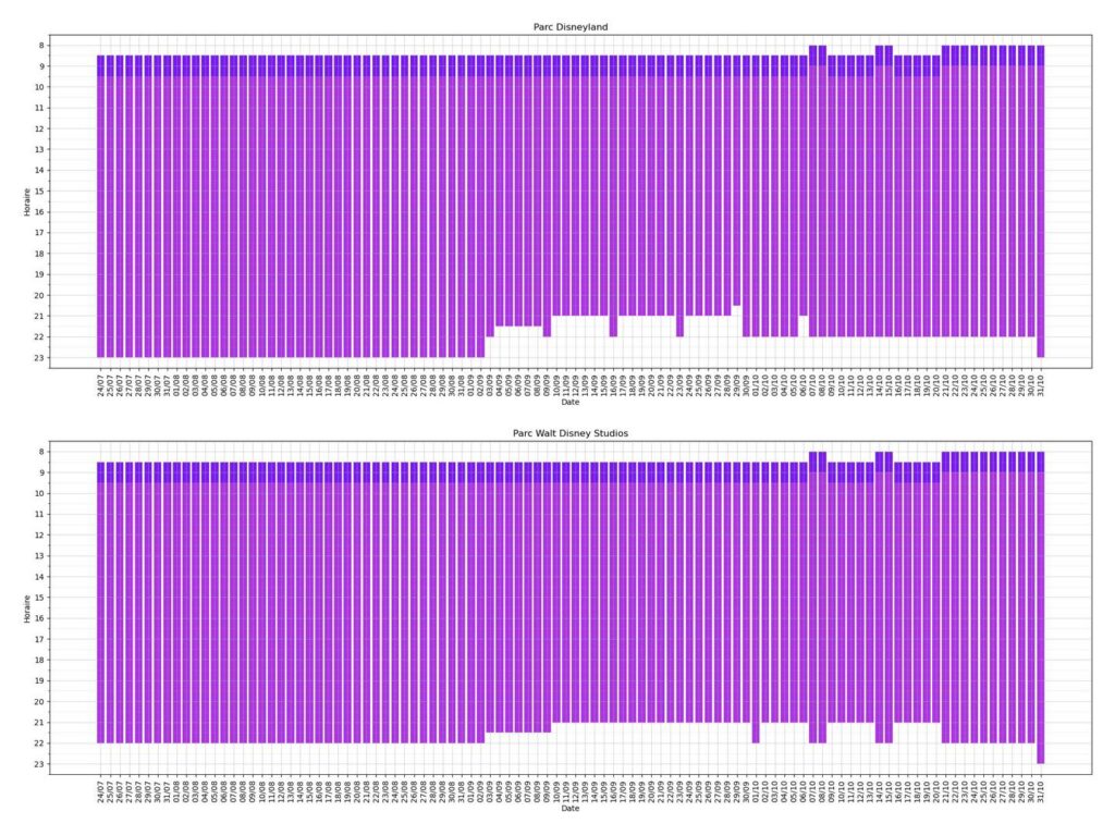 Les horaires des deux parcs ont été publiés jusqu’au 31 octobre sur les serveurs de Disneyland Paris :