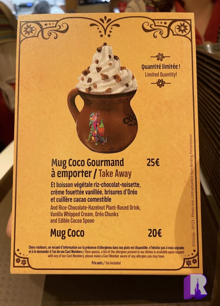 Un mug souvenir est également disponible à la vente en édition limitée à la Casa de Coco. Il est au prix de 20€ seul et 25€ avec une boisson froide au chocolat avec base végétale et de la crème fouettée.