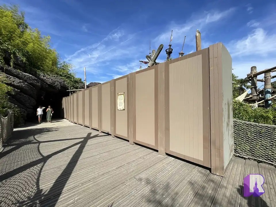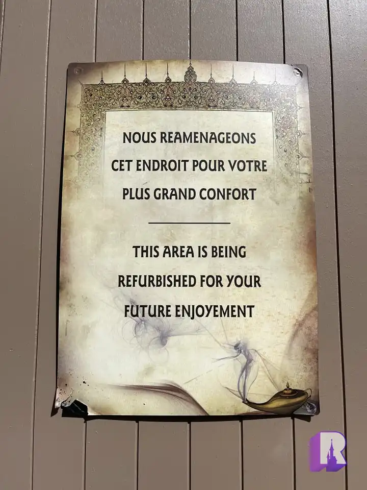 Il semble se passer quelque chose au niveau du pont à côté du Galion des Pirates. Il semblerait également que ce pont soit désormais situé à Agrabah, au vu de la thématisation de l’affiche de travaux.
