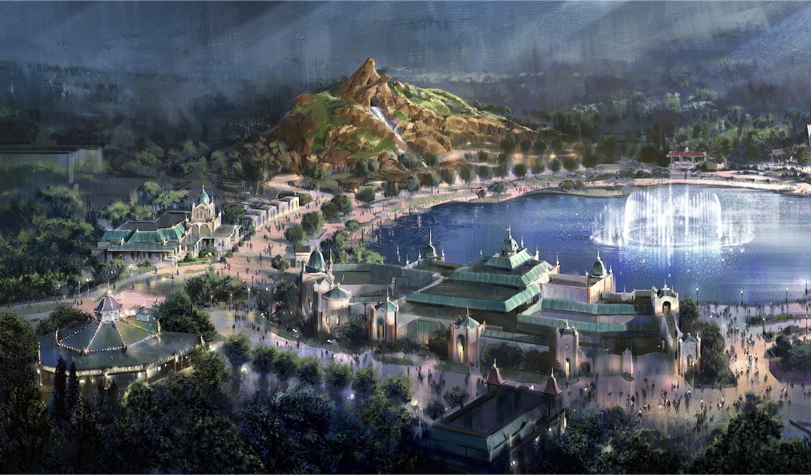 Adventure Way is cornered by four gardens. In the English gardens, the Gazebo will be surrounded by references to stories out of the UK: Mary Poppins, Peter Pan, Winnie the Pooh, 101 Dalmatians. They’ll be represented by bronze statues, some of which will be integrated into benches for Guests to take photos with.